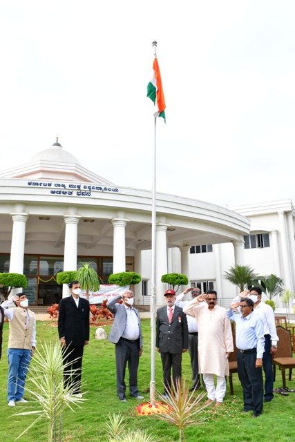 ಮಾಜಿ ಸೇನಾ ಶಾರ್ಟ್ ಕಮೀಷನ್ಡ್ ಅಧಿಕಾರಿ ಕ್ಯಾಪ್ಟನ್ ರಾಮದಾಸ್ ಮಂಜೇಶ್ವರ ಕಾಮತ್ ಧ್ವಜಾರೋಹಣ ನೆರವೇರಿಸಿದರು. ನಂತರ ಮಾತನಾಡಿದ ಅವರು, ದೇಶಸೇವೆ ಮಾಡಲು ಸೈನ್ಯಕ್ಕೇ ಸೇರಬೇಕಾಗಿಲ್ಲ ನಾವು ಮಾಡುವ ಕೆಲಸವನ್ನು ಪ್ರೀತಿಸುತ್ತ ಸುತ್ತಮುತ್ತಲಿನ ಪರಿಸರವನ್ನು ಸಂರಕ್ಷಿಸಿ ಎಲ್ಲರೊಂದಿಗೂ ಶಾಂತಿ, ಸಹಬಾಳ್ವೆಯಿಂದ ಇದ್ದರೆ ಅದೂ ಸಹ ದೇಶ ಸೇವೆಯೇ ಎಂದರು. ಅಧ್ಯಕ್ಷತೆ ವಹಿಸಿ ಮಾತನಾಡಿದ ಕುಲಪತಿ ಡಾ.ಎಸ್.ವಿದ್ಯಾಶಂಕರ್ ನಾವೆಲ್ಲರು ದೇಶಕ್ಕಾಗಿ ತಮ್ಮ ಪ್ರಾಣವನ್ನೇ ಅರ್ಪಿಸಿದ ಮಹಾನ್ ನಾಯಕರನ್ನು ಇಂತಹ ಘಳಿಗೆಯಲ್ಲಿ ಸ್ಮರಿಸುತ್ತ ಅವರ ಅದರ್ಶಗಳನ್ನು ನಾವೂ ಸಹ ಅಳವಡಿಸಿಕೊಂಡು ಅವರು ಹಾಕಿಕೊಟ್ಟ ಹಾದಿಯಲ್ಲಿ ನಡೆದರೆ ಅದೇ ನಾವು ಅವರಿಗೆ ಕೊಡುವ ಗೌರವ ಎಂದರು.